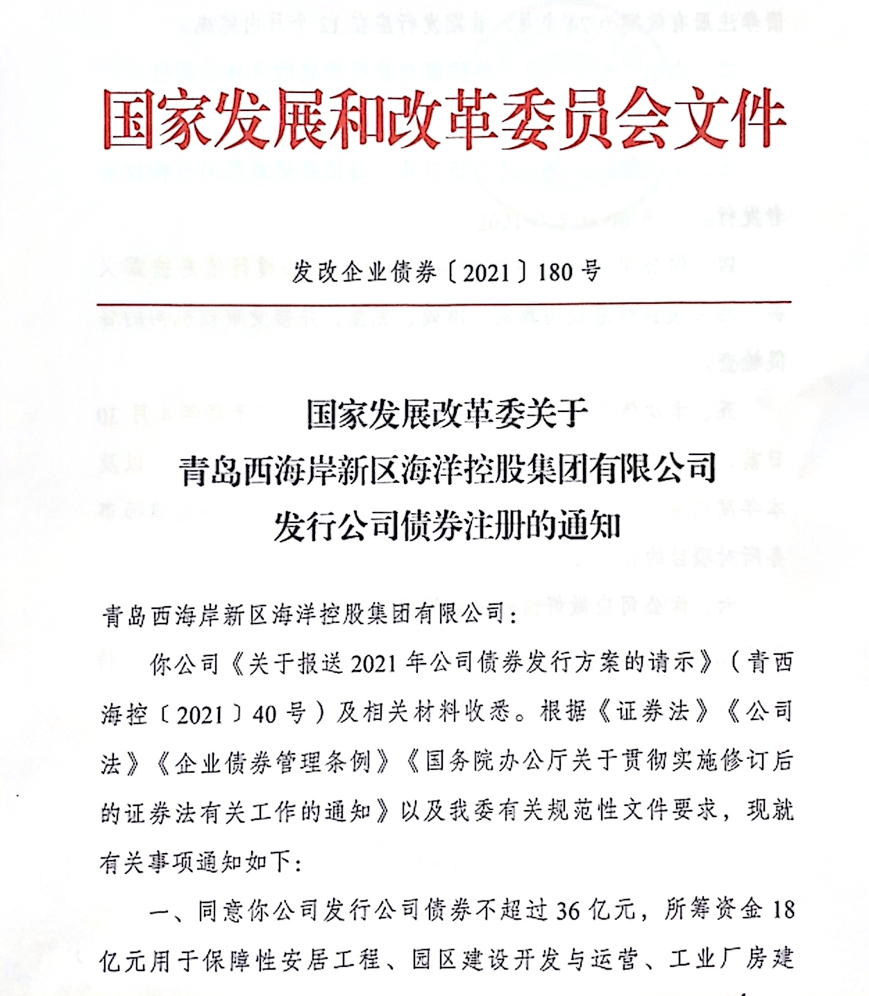 8月30日,海控集團成功獲得國家發展和改革委員會優質企業債批復,額度36億元,標志著青島市第一支優質企業債券成功獲批。